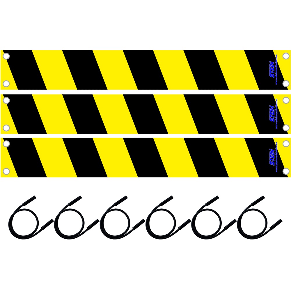 This kit contains 3 Yellow & Black Hazard Banners and 6 Bungee straps.